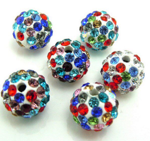 10mm 6 rows of straight holes ab soft clay double hole Shambhala beads loose beads diamond ball bracelet white and black j87