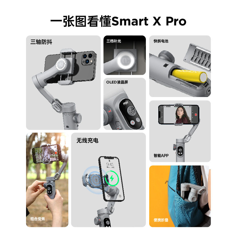 Aochuan Smart X Pro mobile phone pan-tilt anti-shake handheld stabilizer smart video live selfie vlog