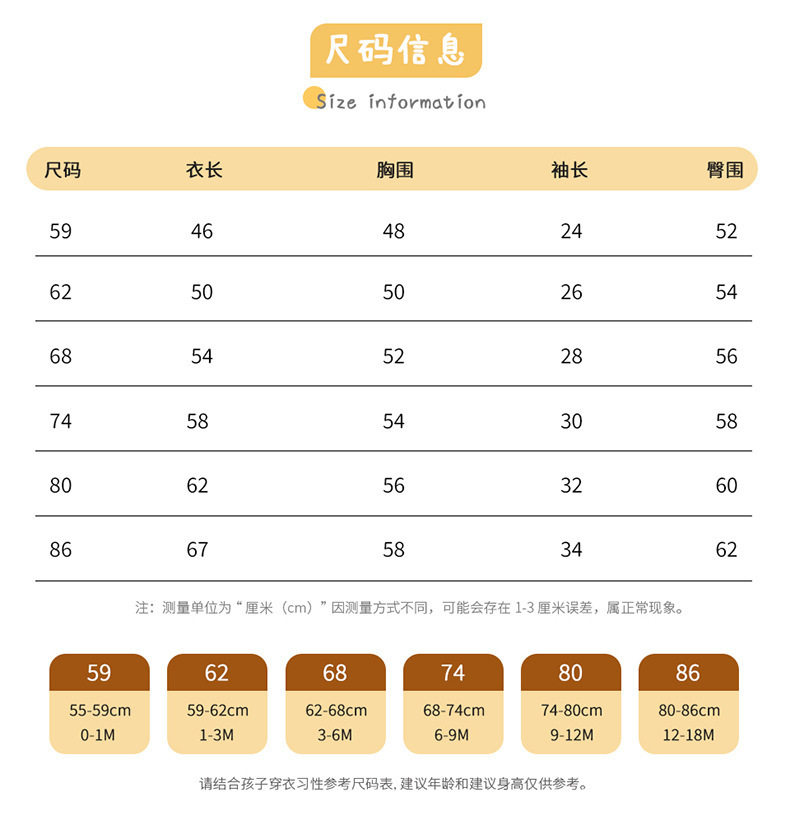 | 适合年龄段 | 婴幼童(1~3岁,80~100cm) | 款式 | 三角爬 |