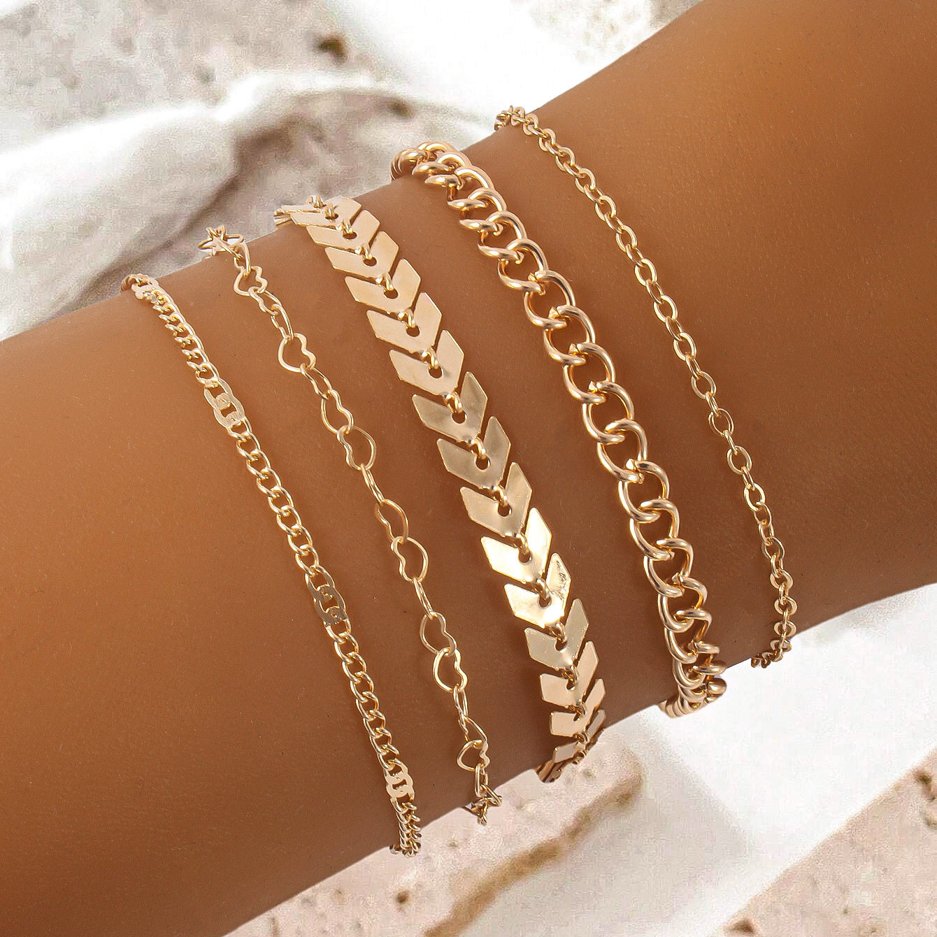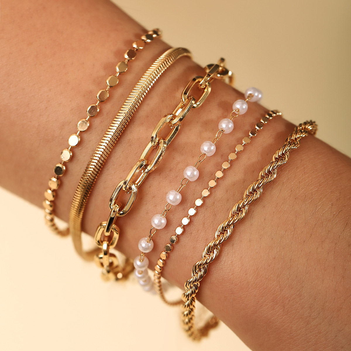 SKU: 847576403259Gold 6-piece punk style bracelet