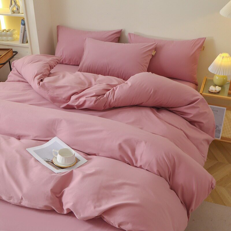 Cotton brushed four-piece set new pure cotton bed sheet quilt cover dormitory single fitted sheet three-piece set