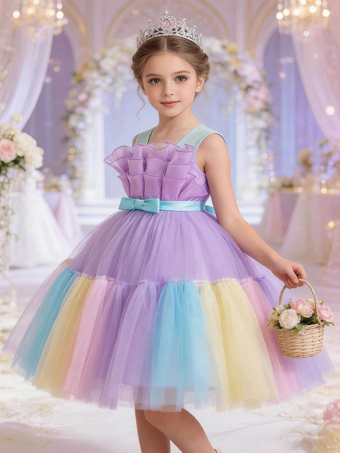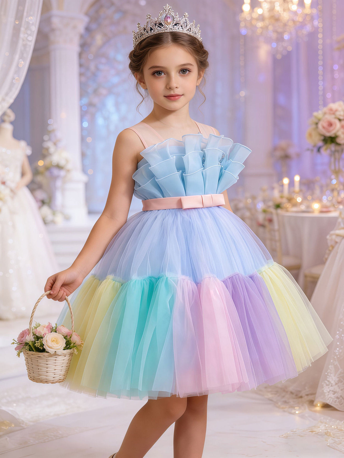 女童礼服裙子蝴蝶结花童婚纱晚礼服生日派对蓬蓬连衣裙节目演出服