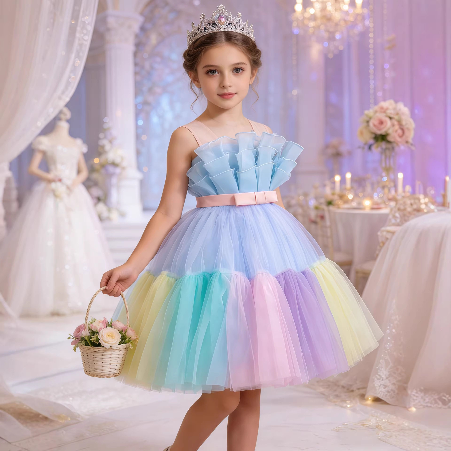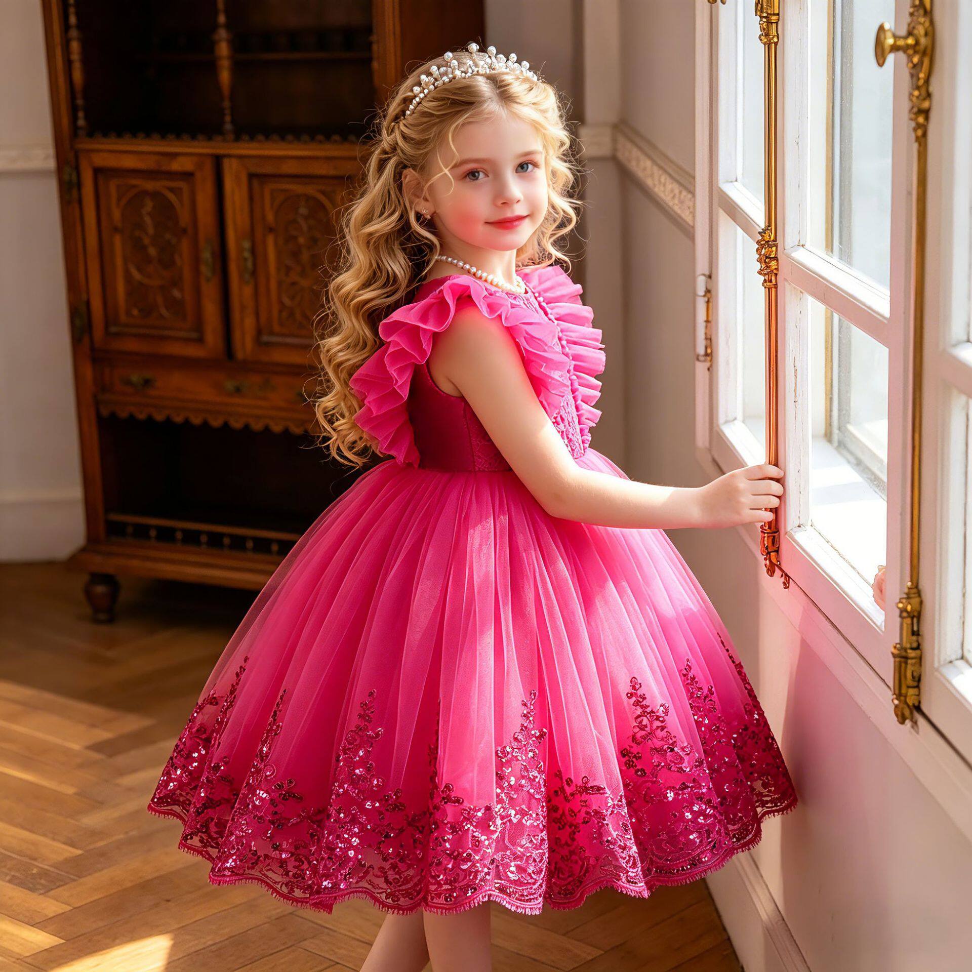 跨境新款儿童礼服亮片蓬蓬网纱蛋糕公主裙女宝宝周岁宴会晚礼服裙