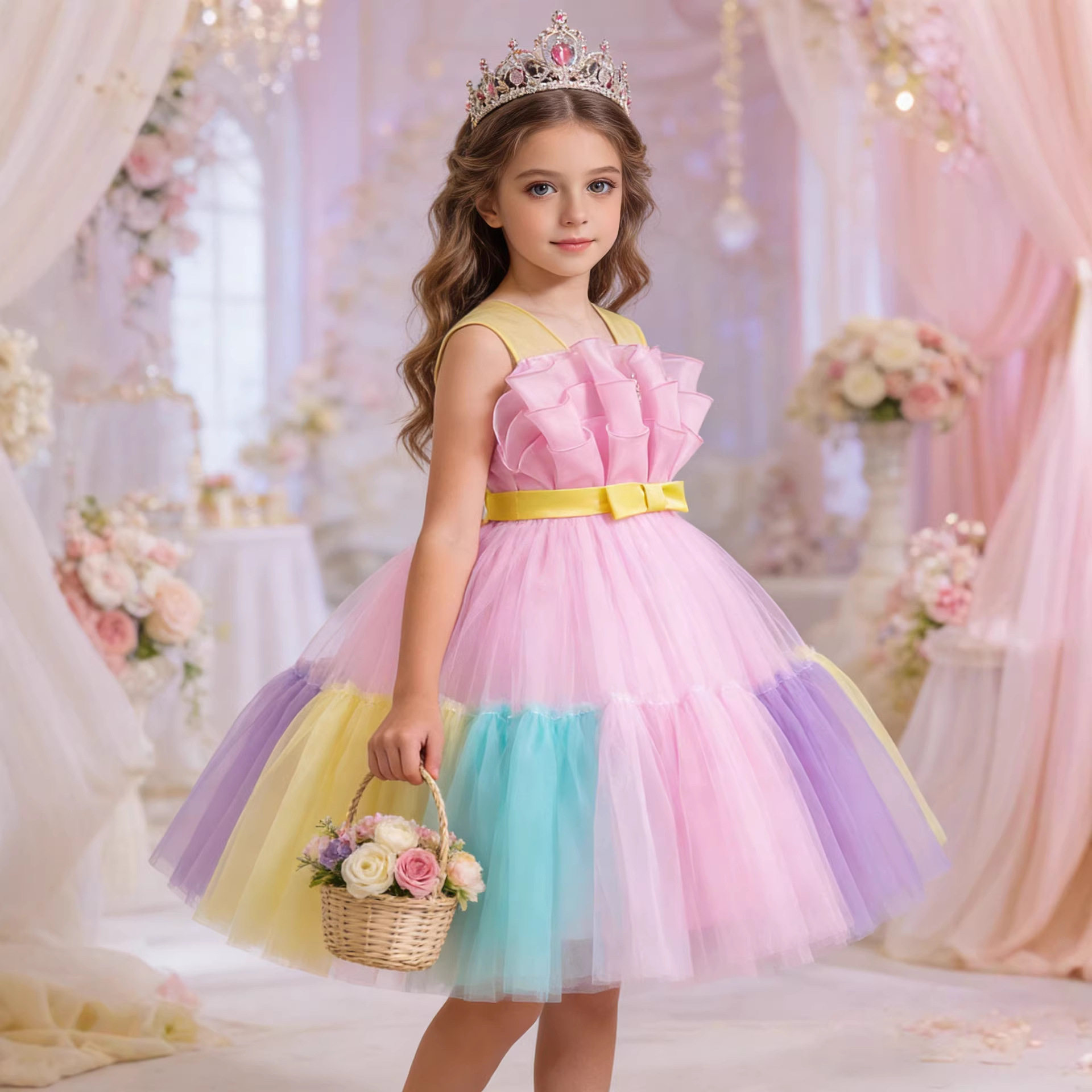 新款儿童网纱礼服蓬蓬公主裙中大童装连衣裙女童周岁服装跨境专供