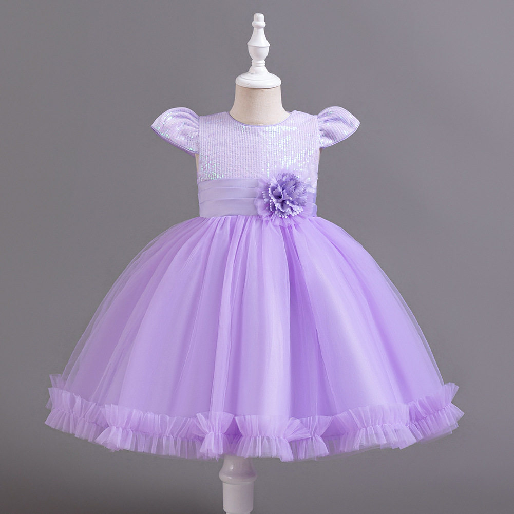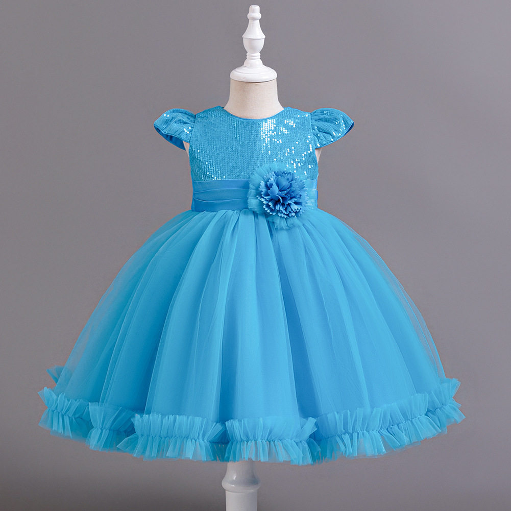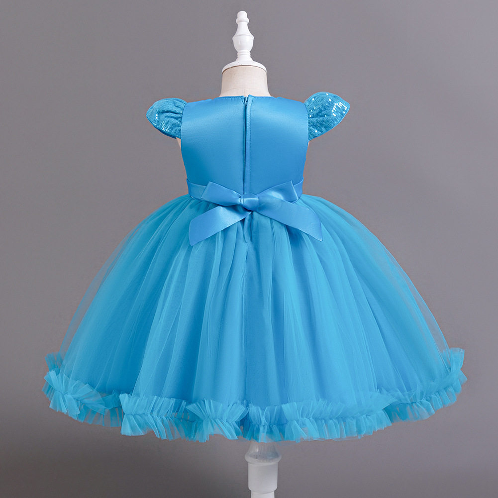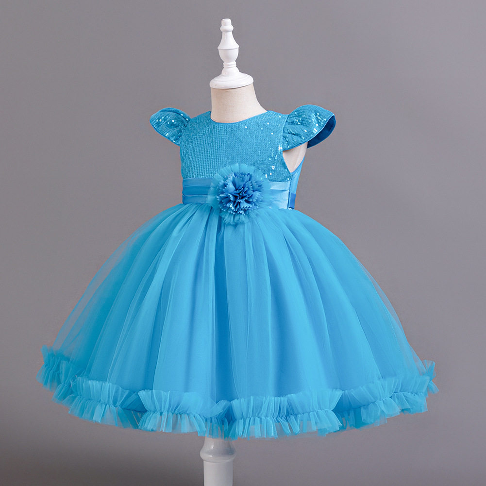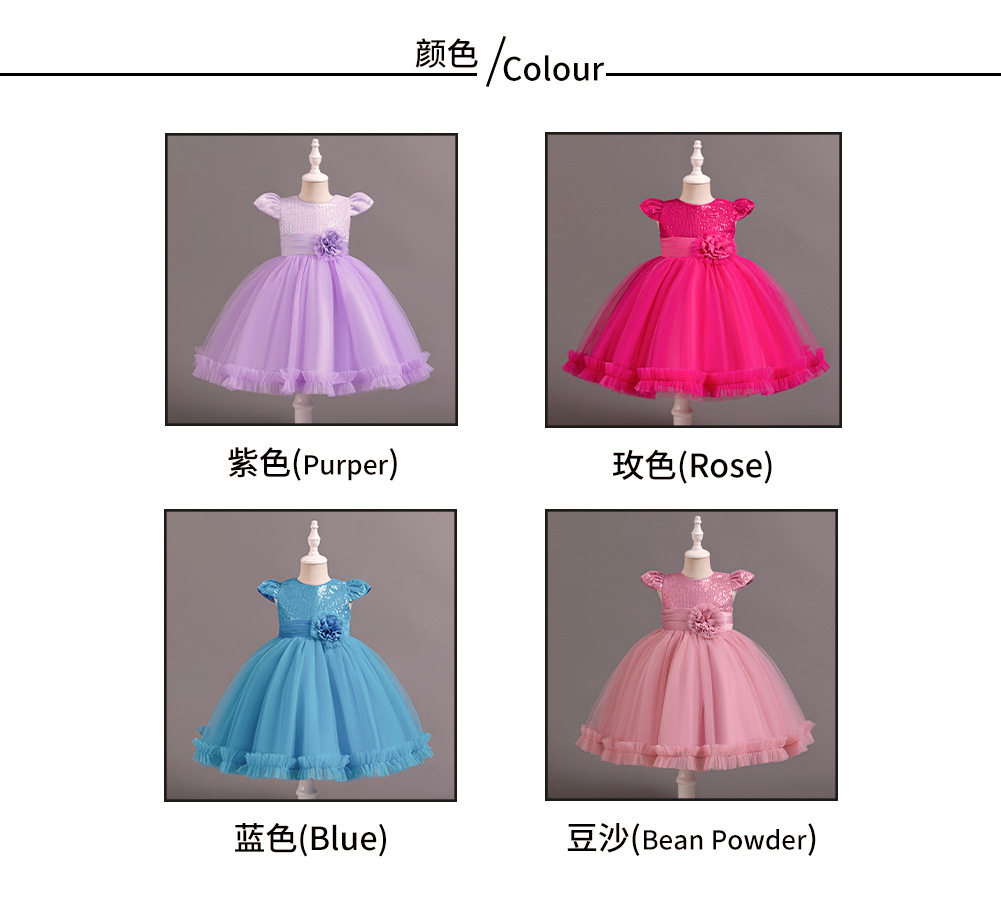 Girls dress short-sleeved sequin flower fluffy princess cake dress catwalk banquet birthday party dress 930