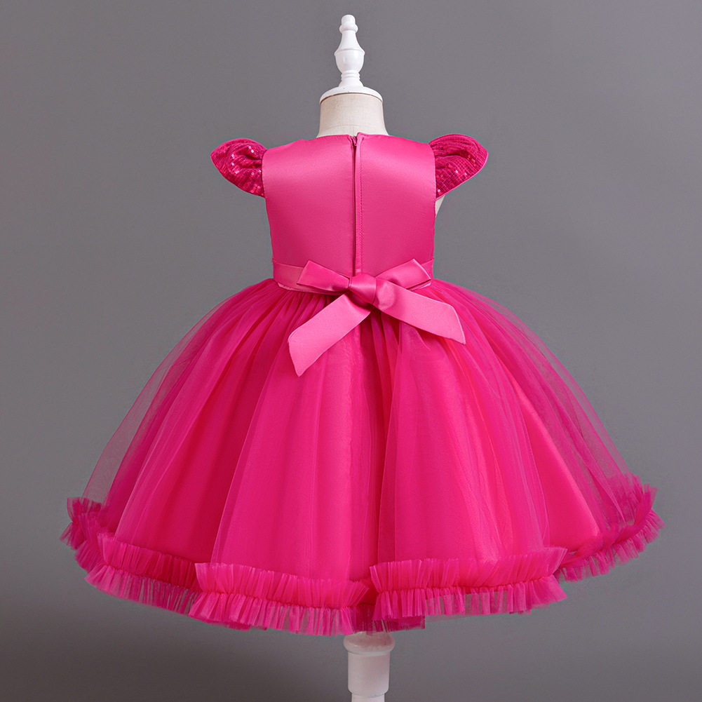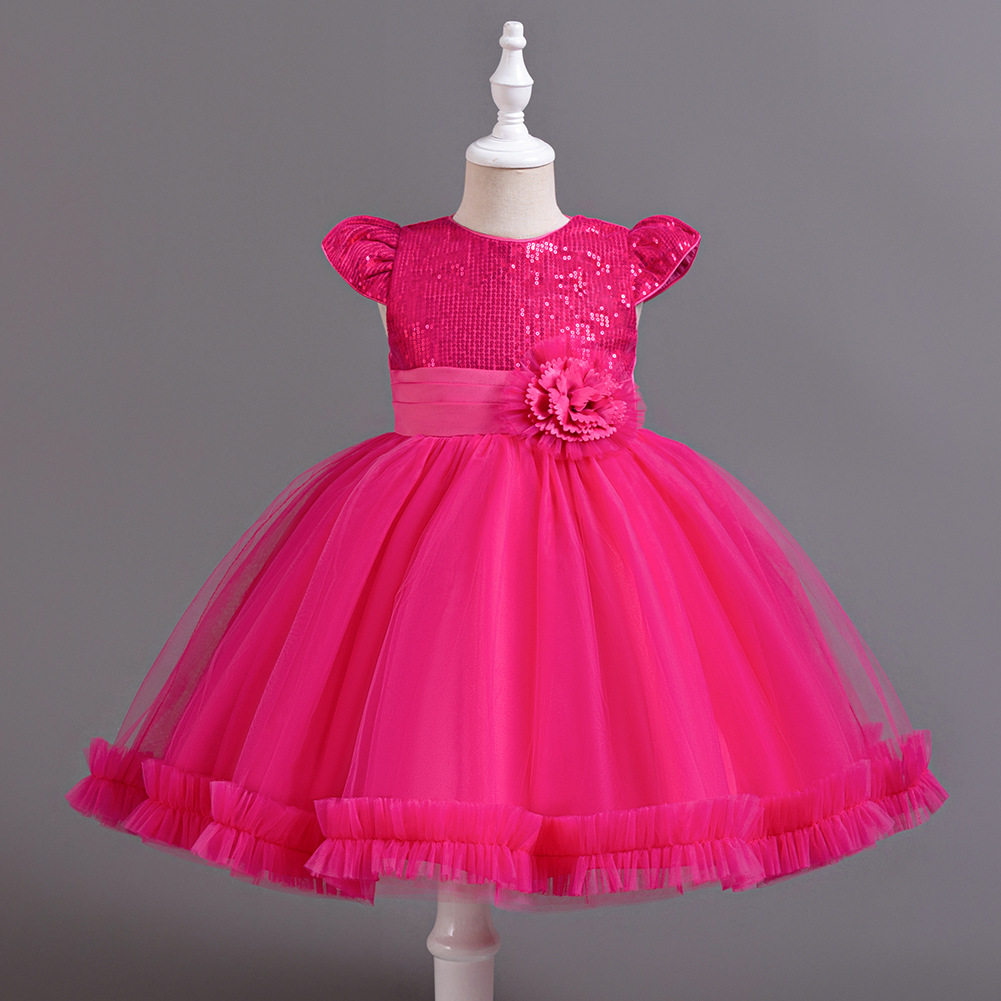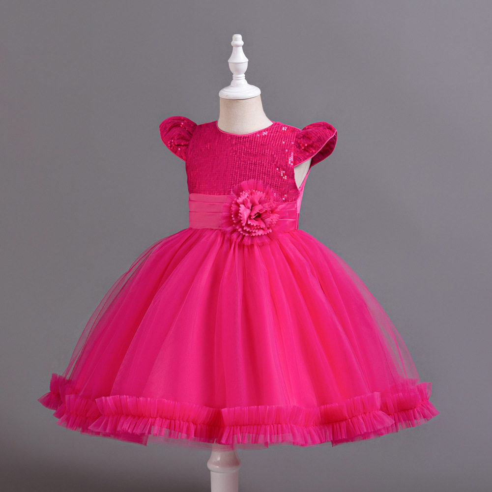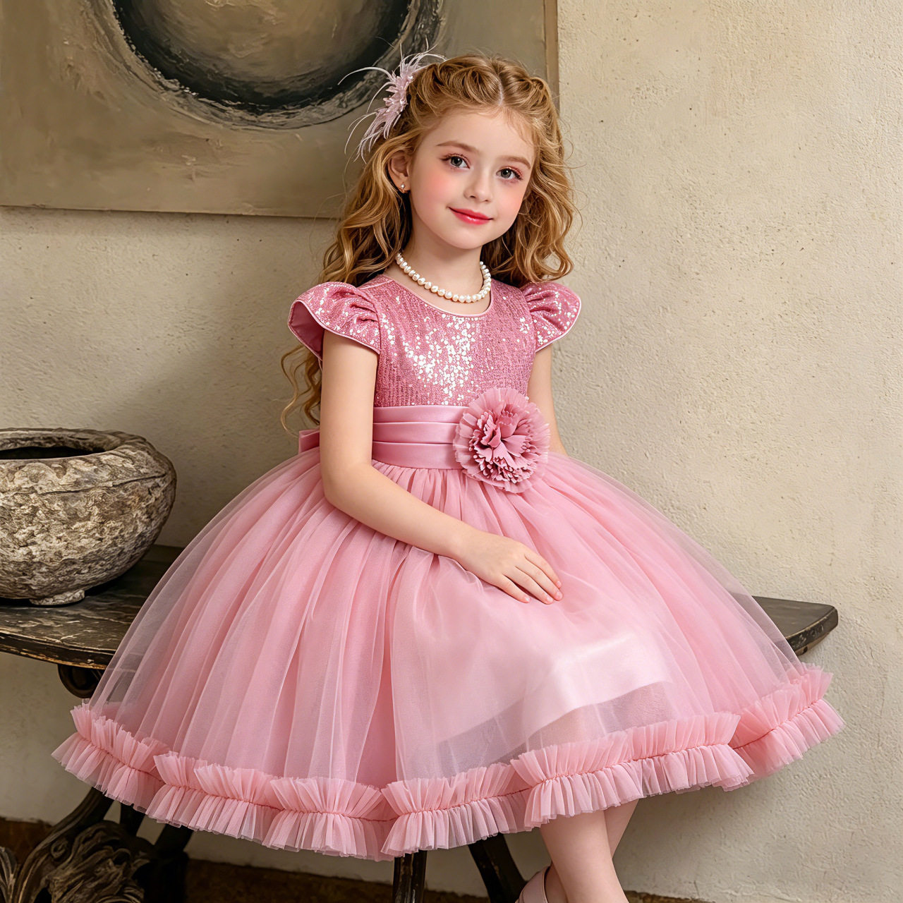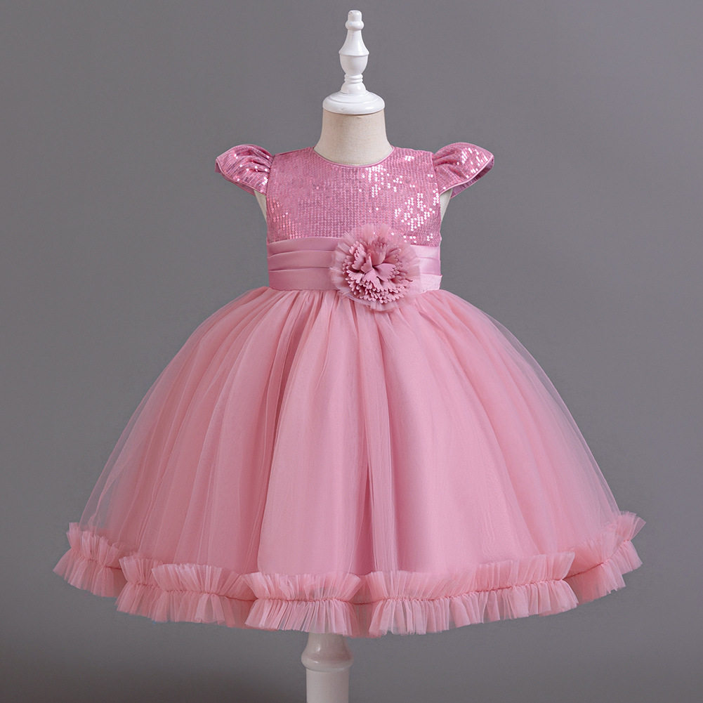 Girls dress short-sleeved sequin flower fluffy princess cake dress catwalk banquet birthday party dress 930