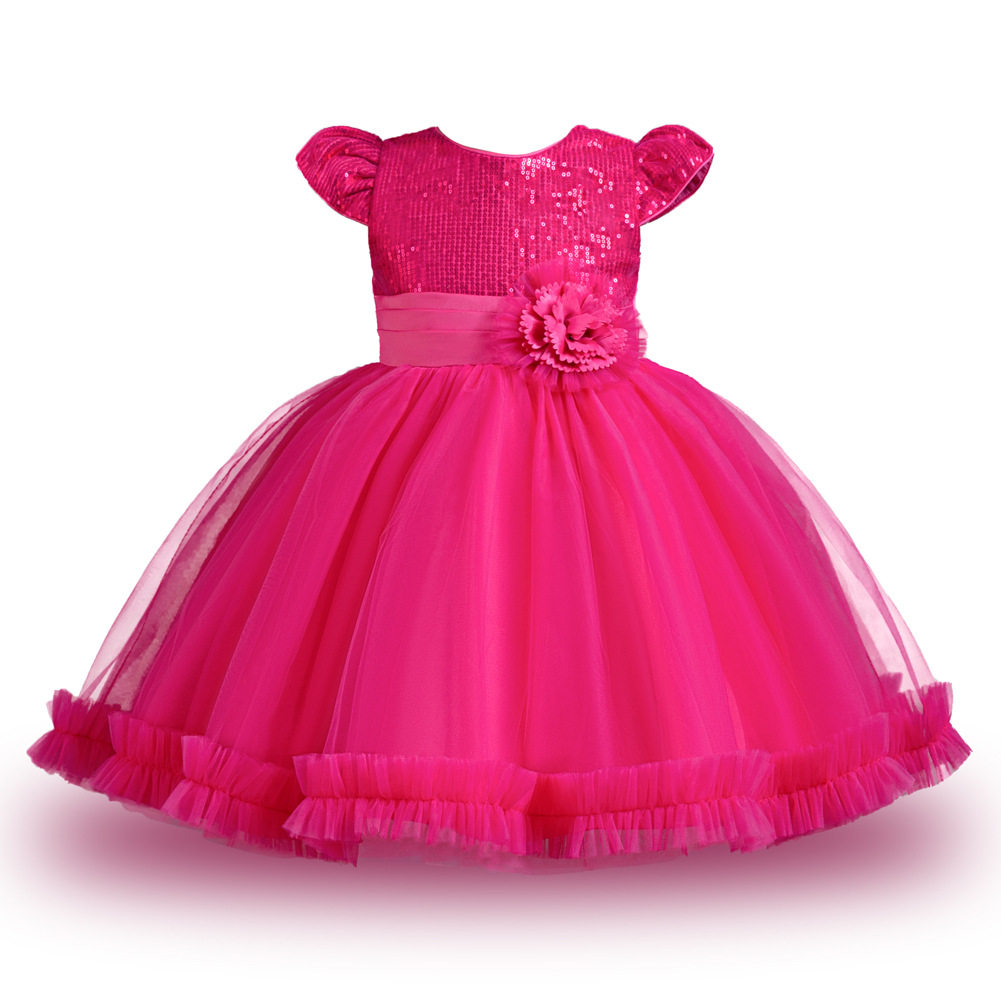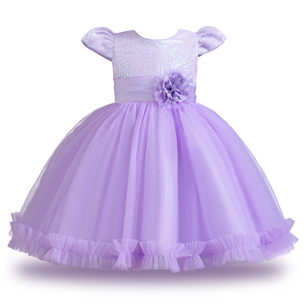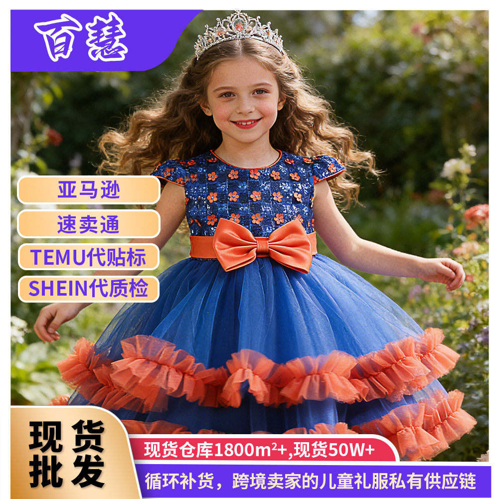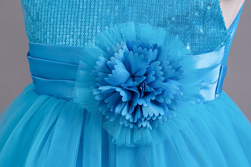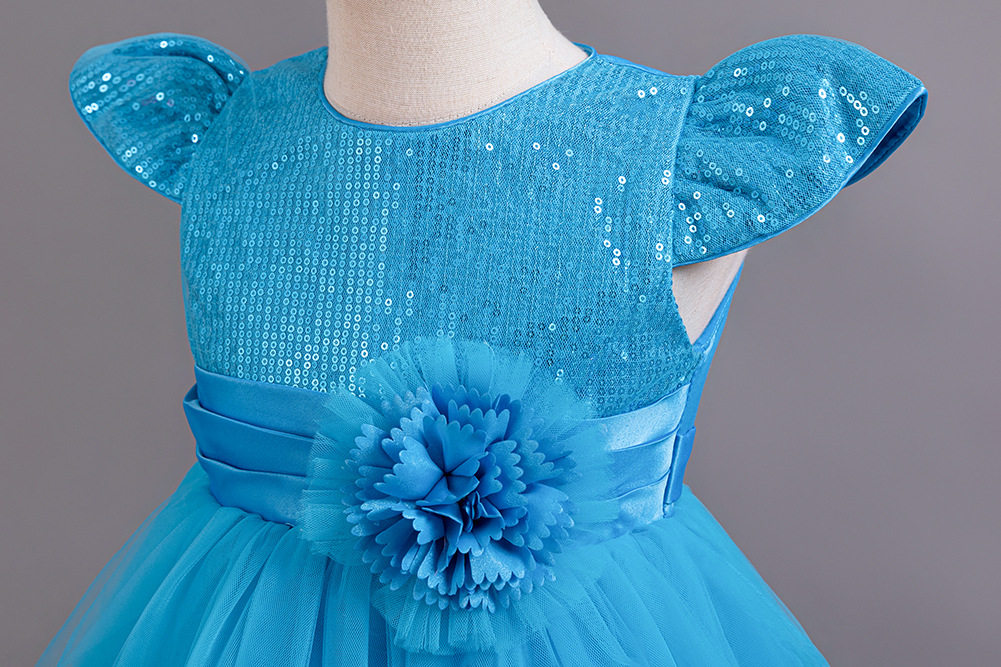Girls dress short-sleeved sequin flower fluffy princess cake dress catwalk banquet birthday party dress 930