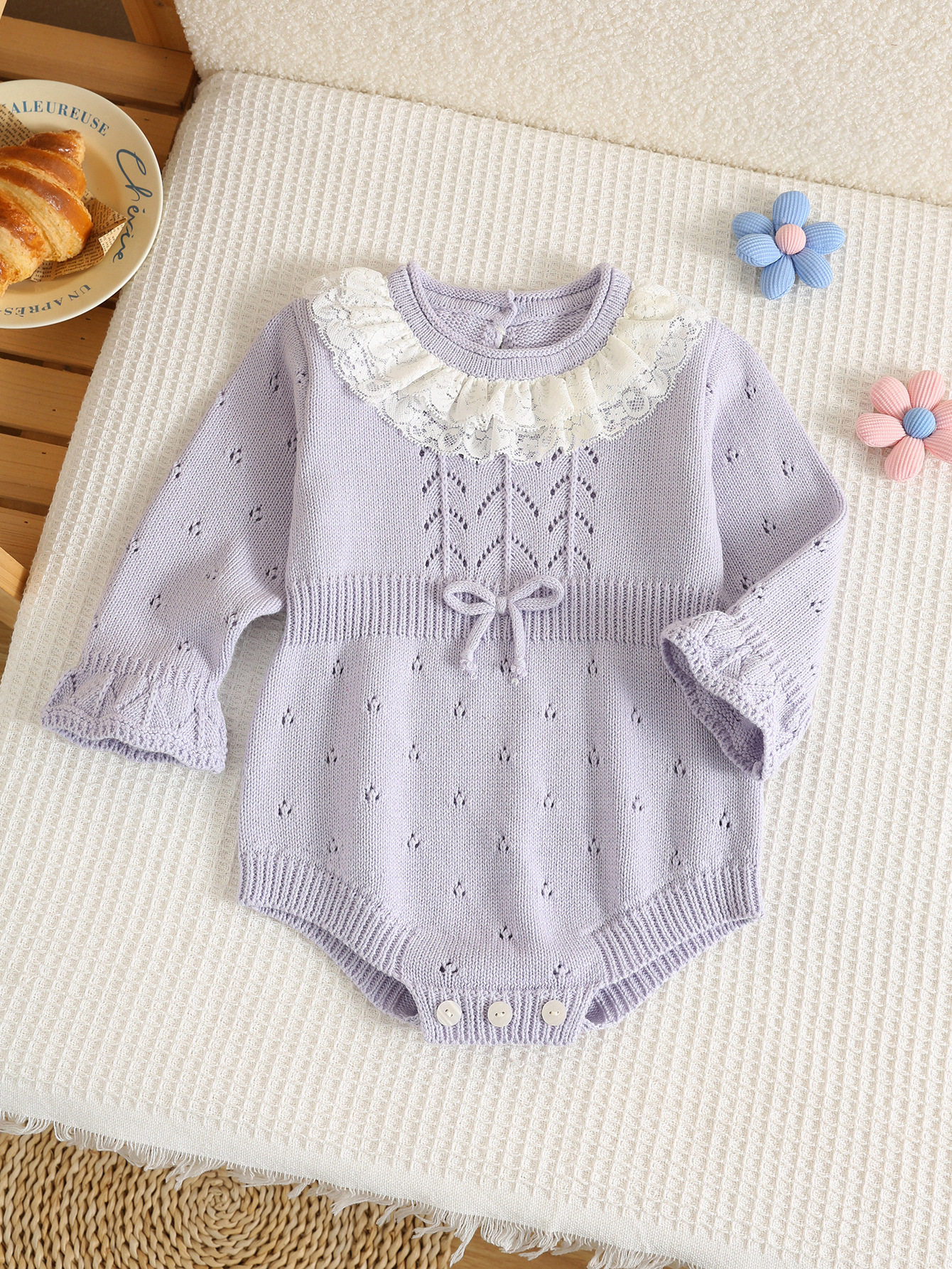 Infants and Toddlers Exquisite Lace Collar Knitted Bags and Harness Jackets