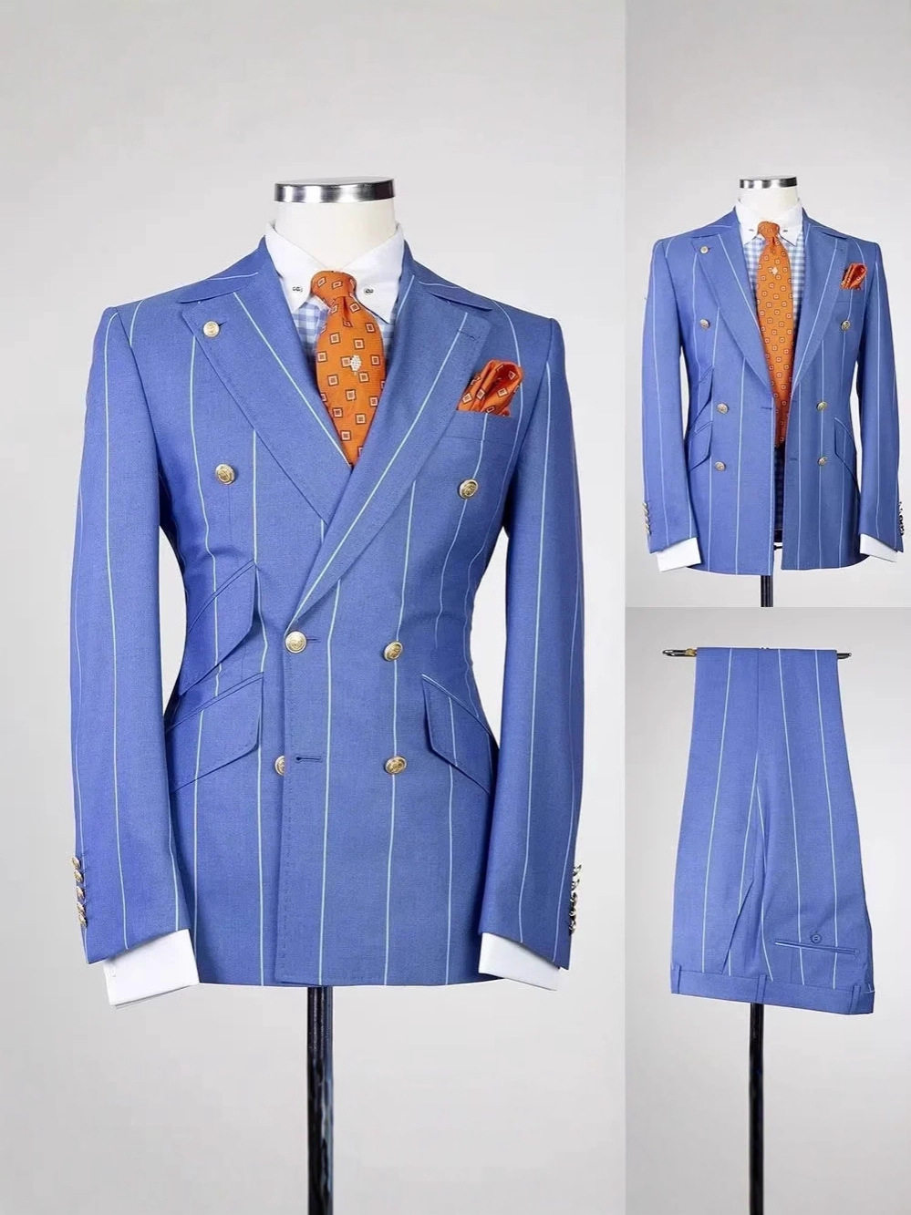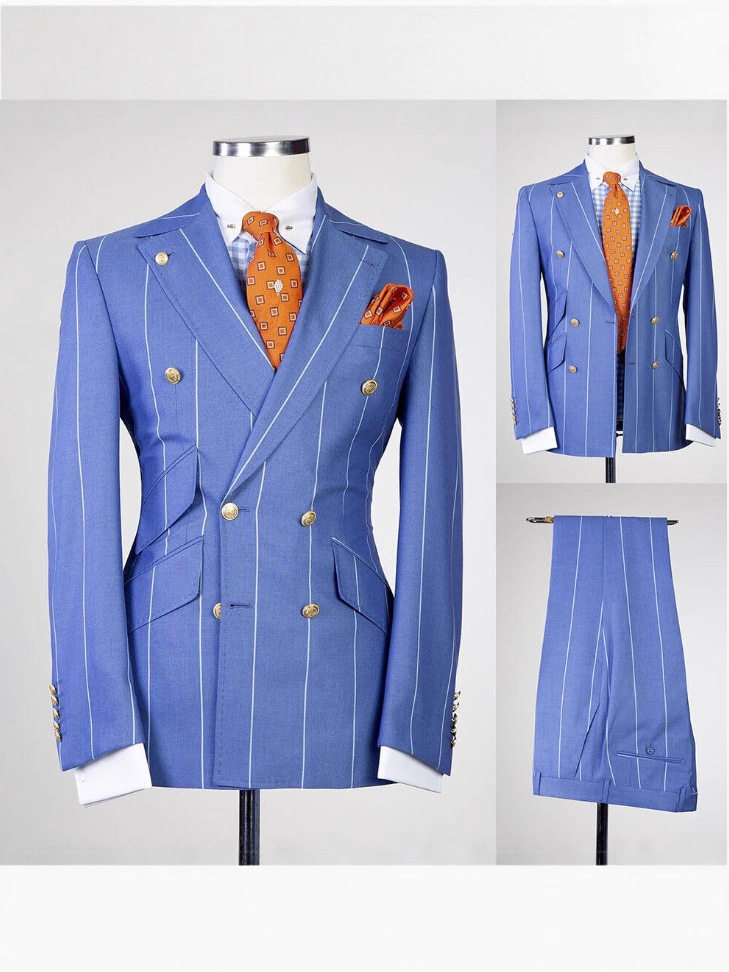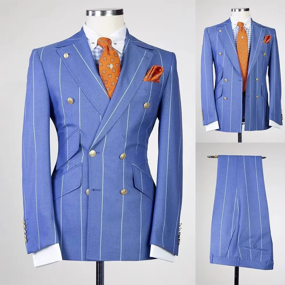 Men's Striped Two-Piece Suit Slim Double Row Banquet Business Suit