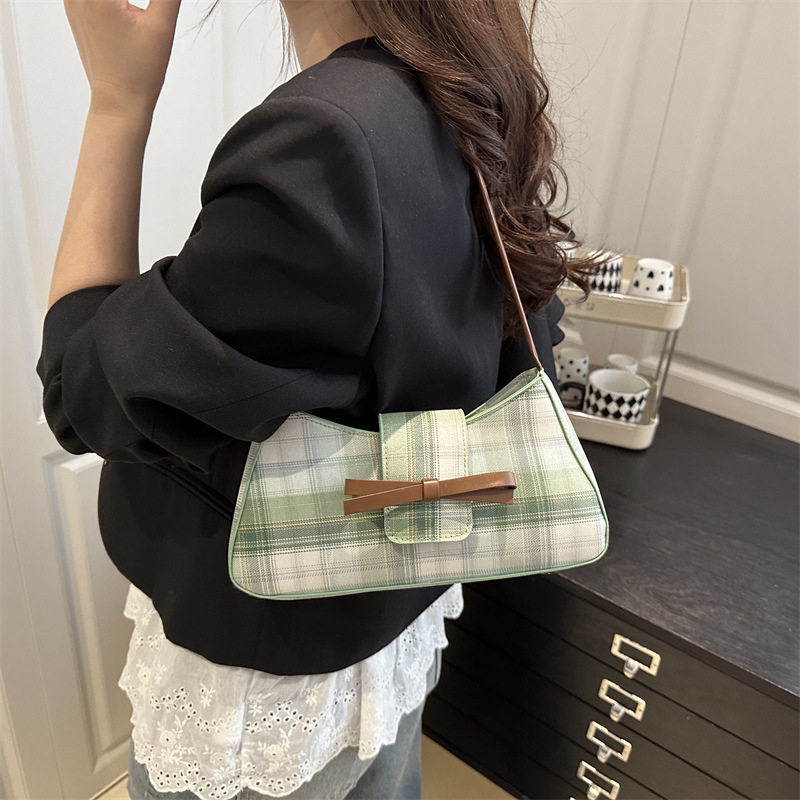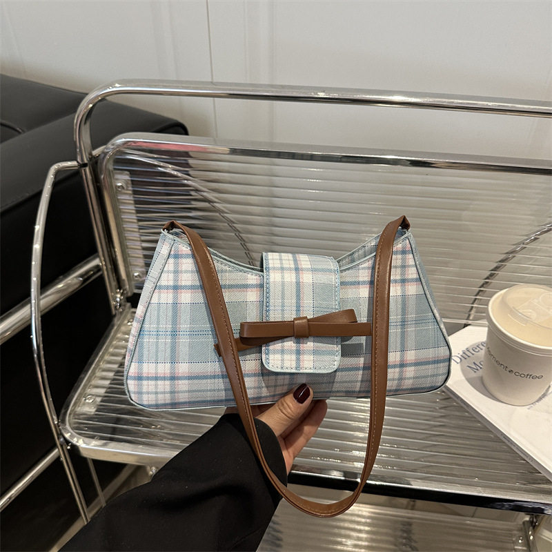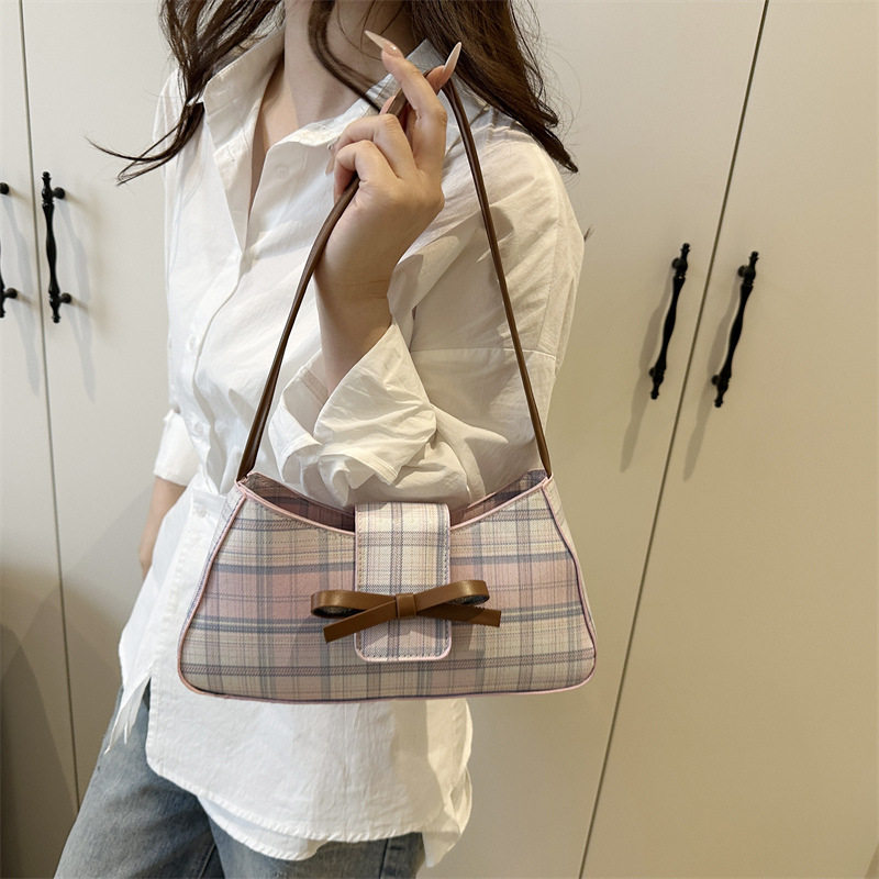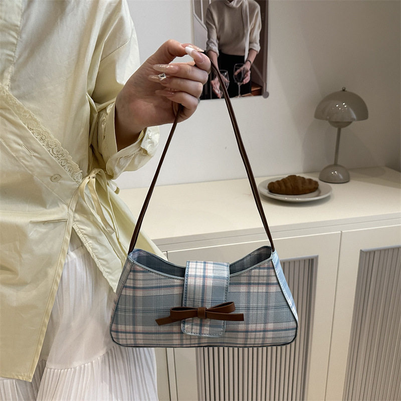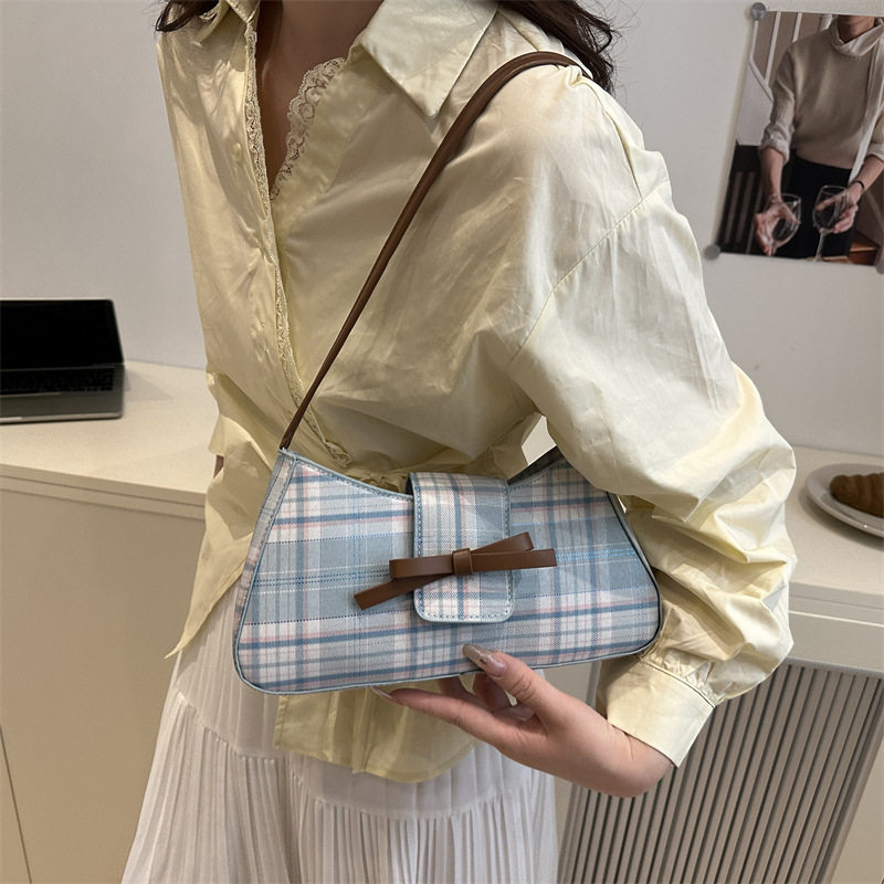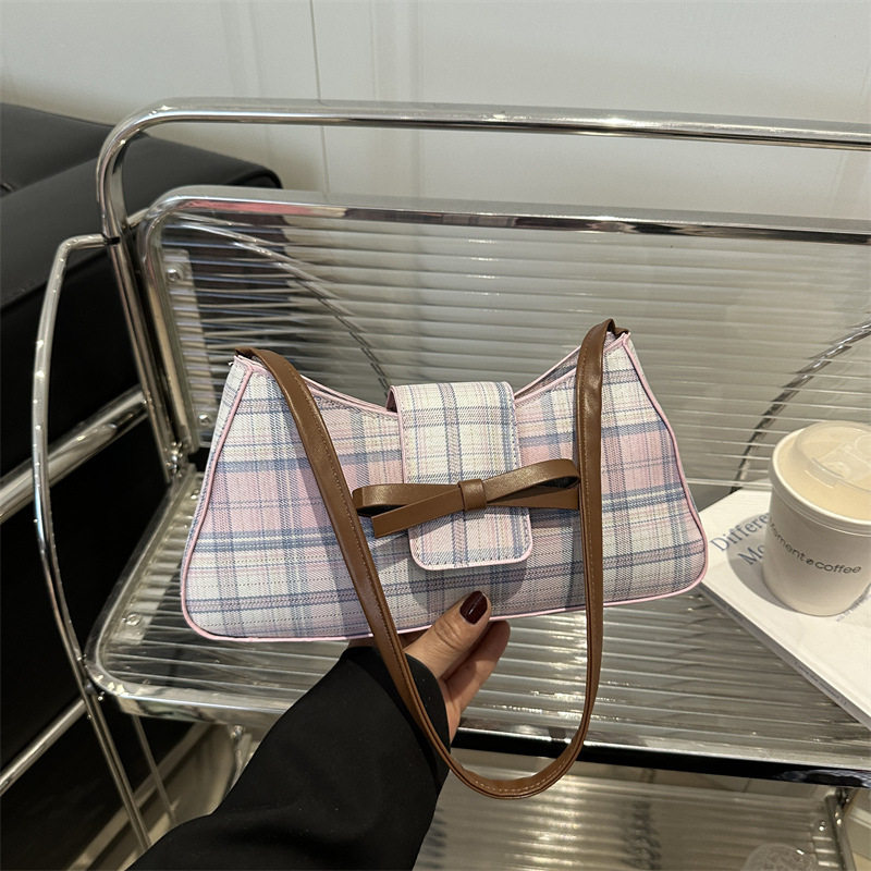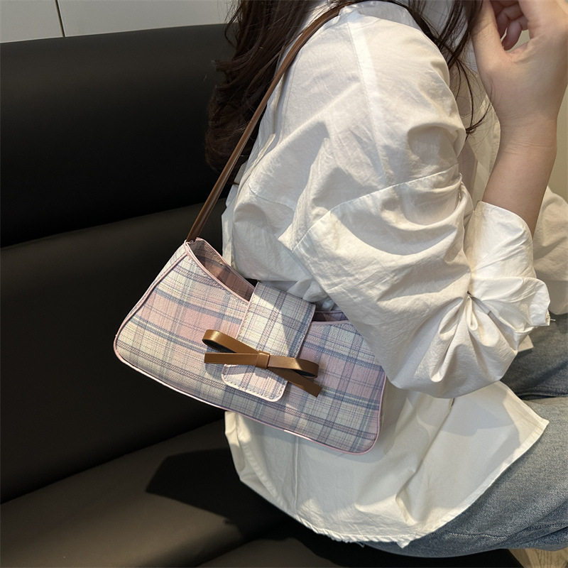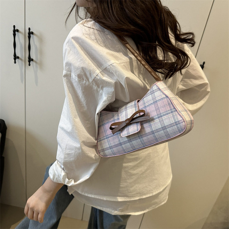 Plaid bag women's trendy fashionable casual all-match shoulder bag bow commuting armpit bag