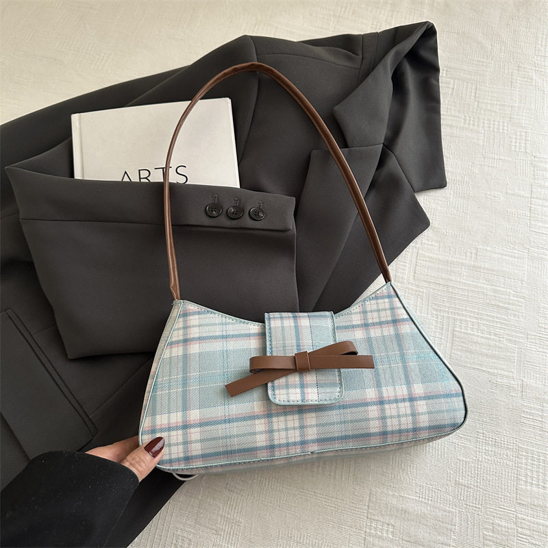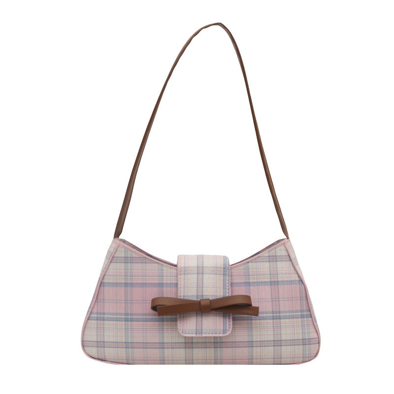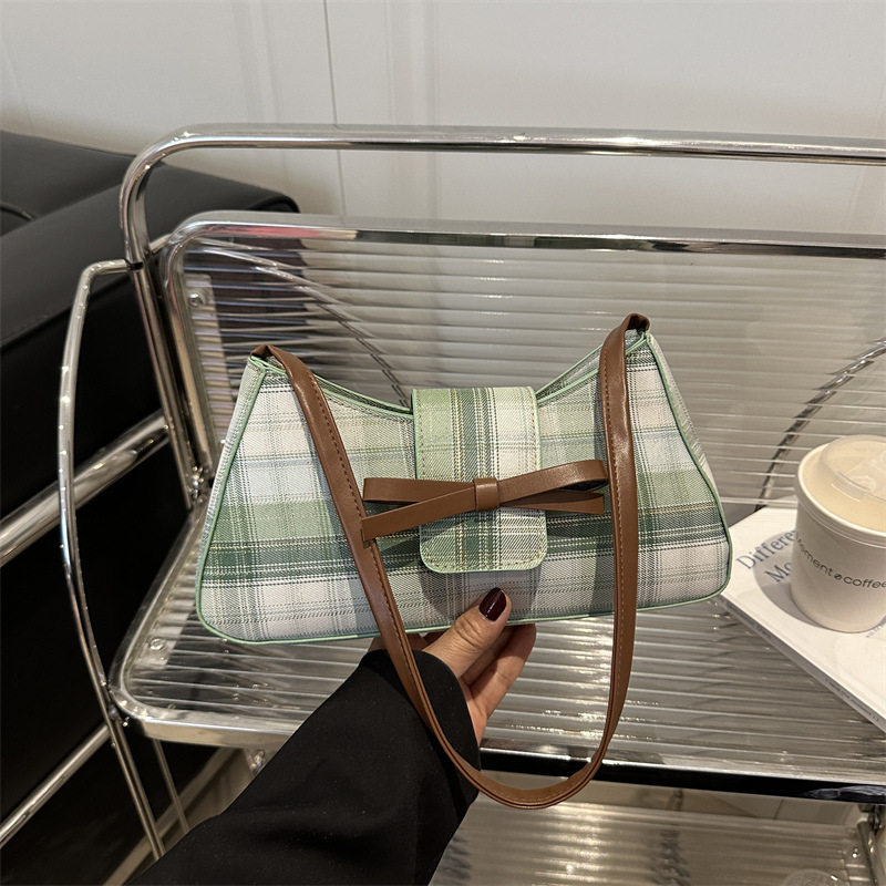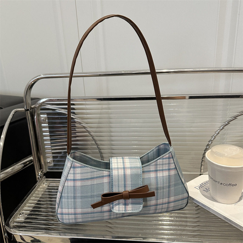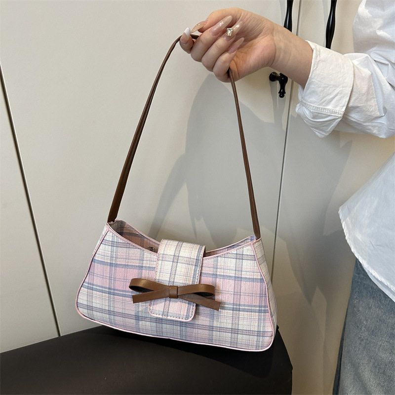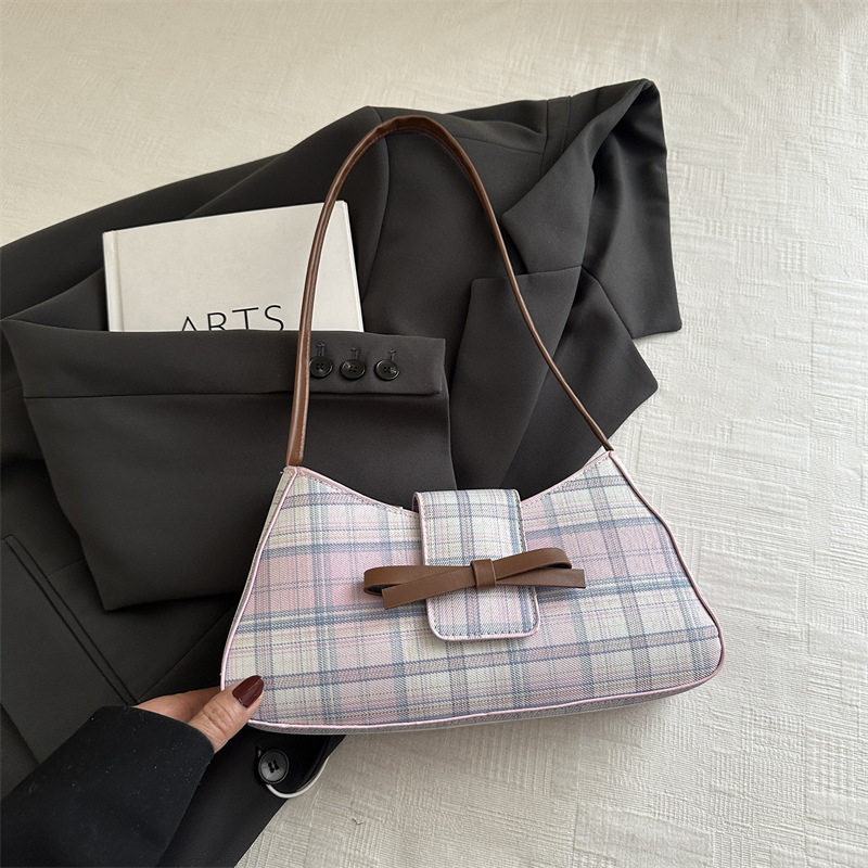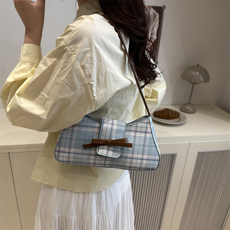 Plaid bag women's trendy fashionable casual all-match shoulder bag bow commuting armpit bag