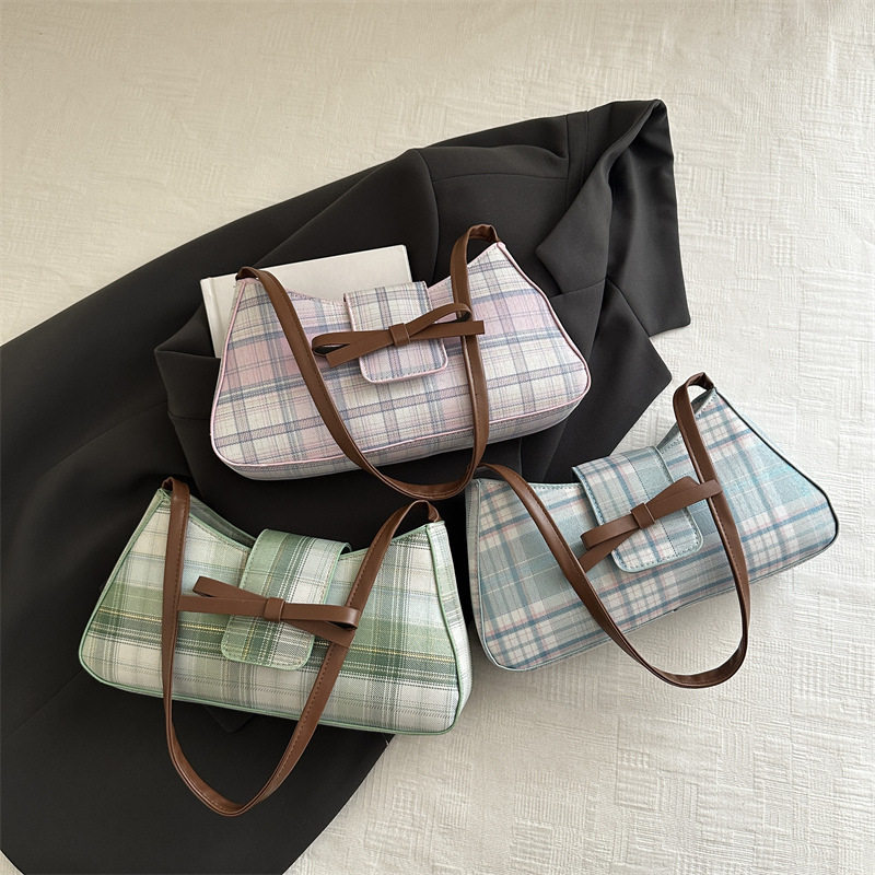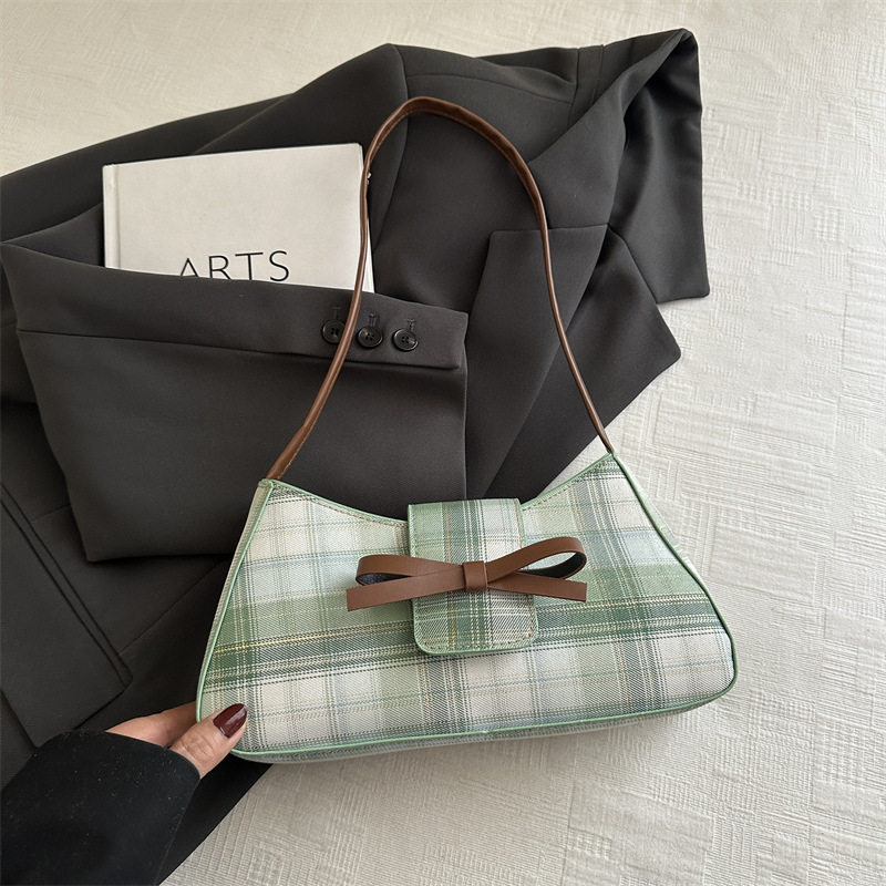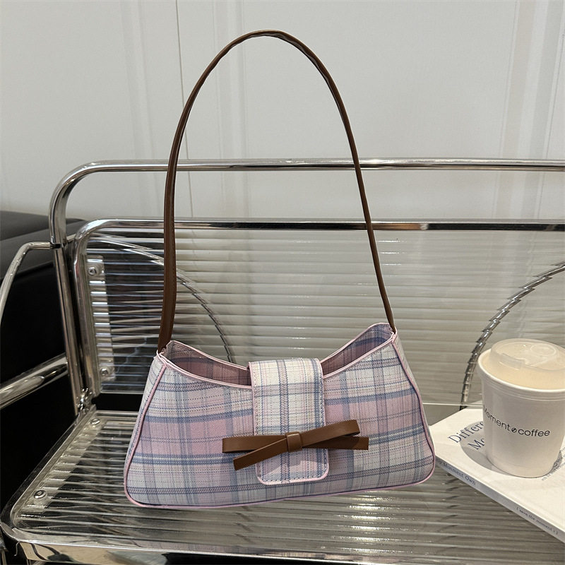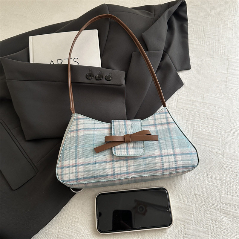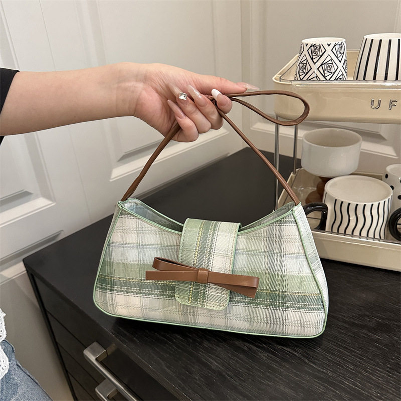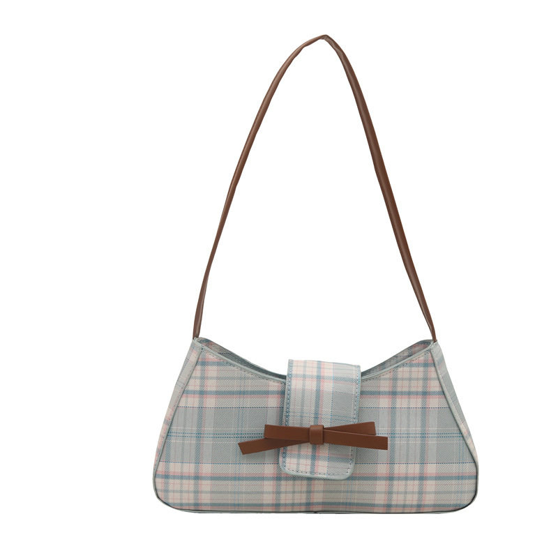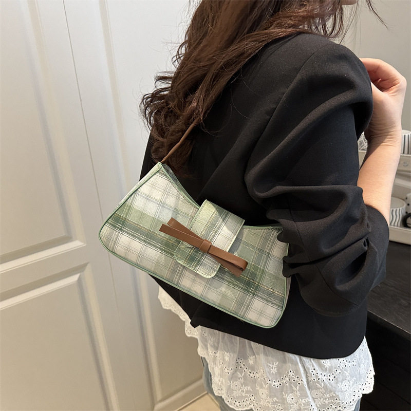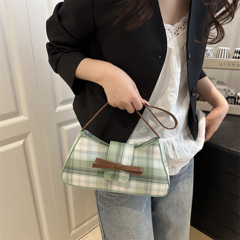 Plaid bag women's trendy fashionable casual all-match shoulder bag bow commuting armpit bag
