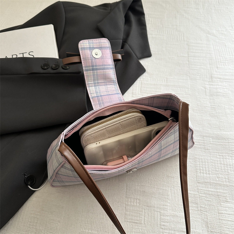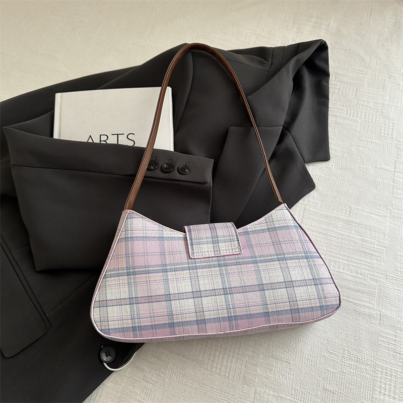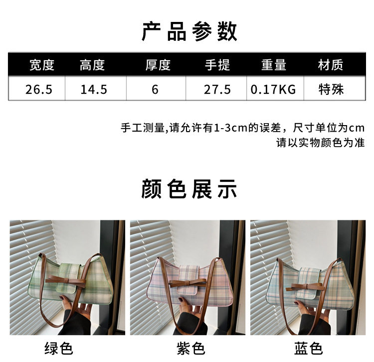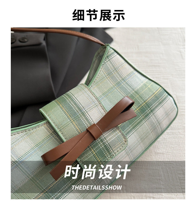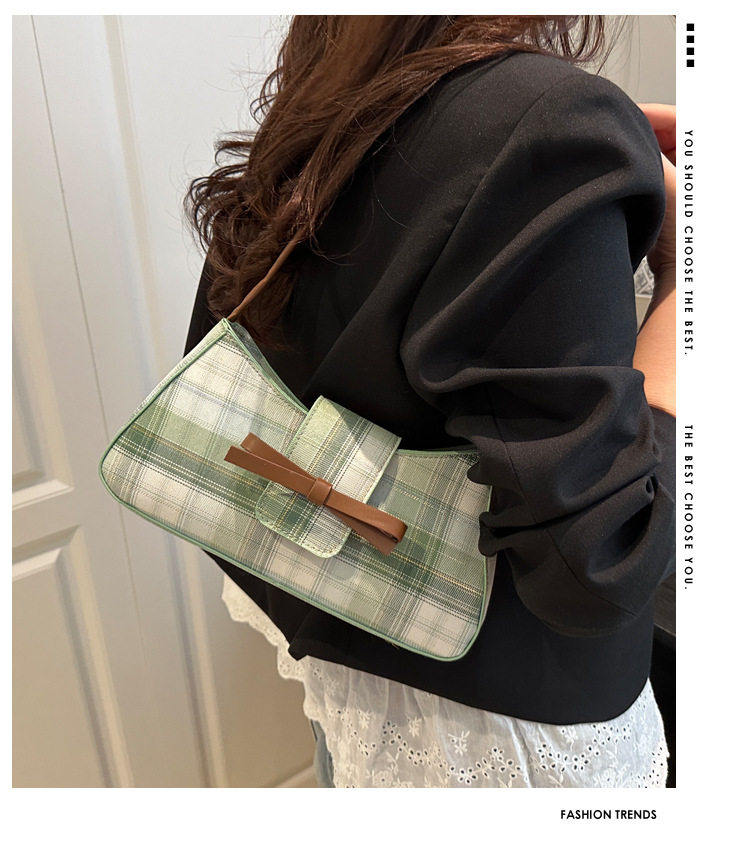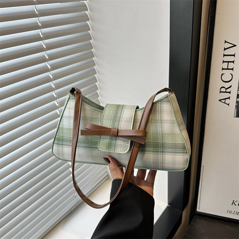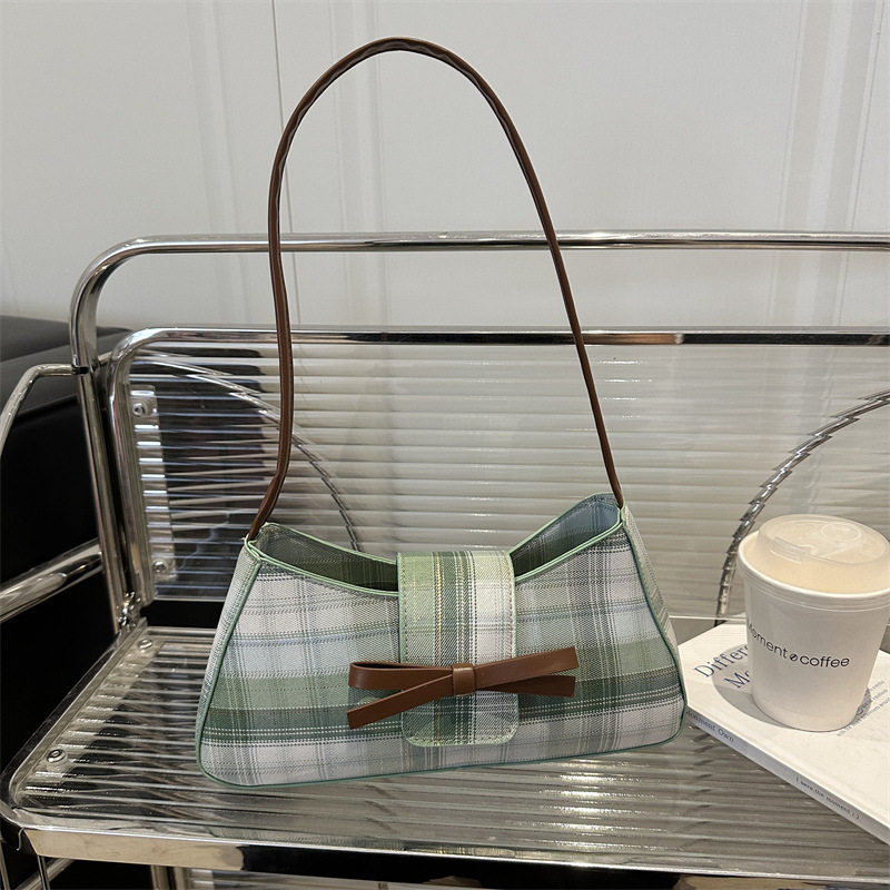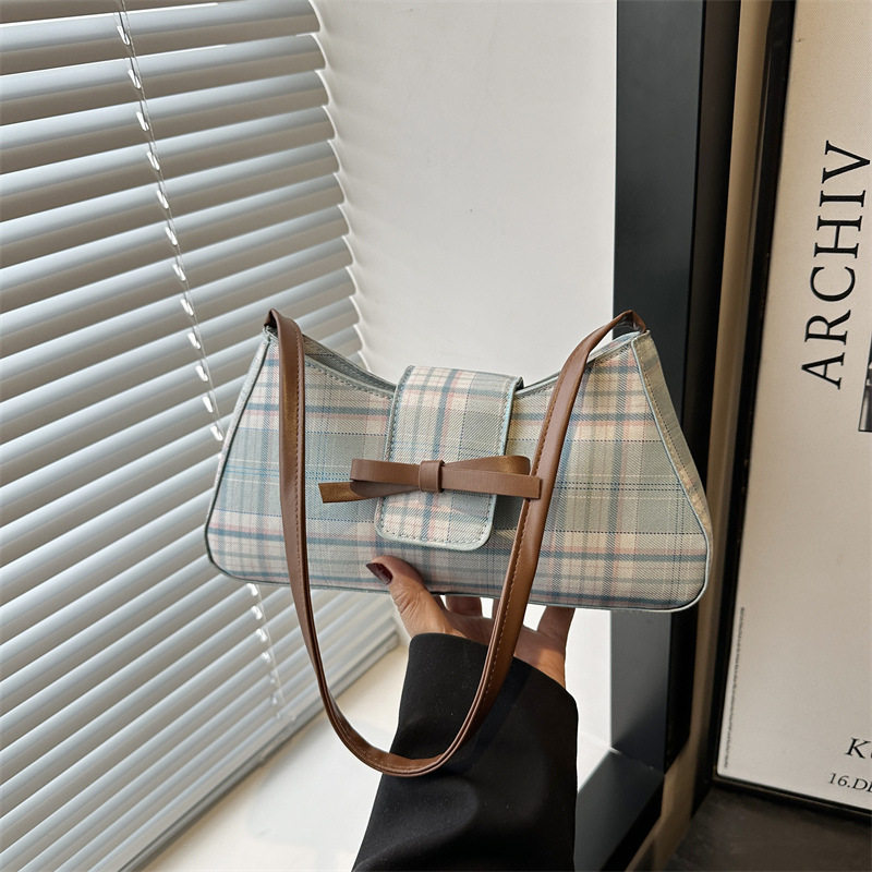 Plaid bag women's trendy fashionable casual all-match shoulder bag bow commuting armpit bag
