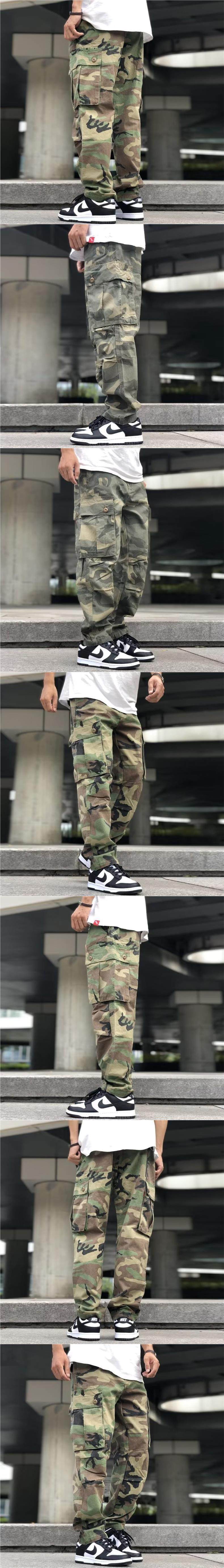 retro loose straight camouflage overalls men's tapered heavyweight washed tactical military pants trendy brand