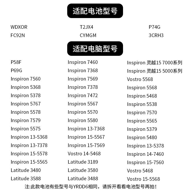 Suitable for notebook Dell 15-55657000 5567 7368 7460 7560 7572 WDXOR battery