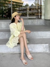 k**01件买了这双凉鞋,真没让我失望。交叉绑带的设计很独特,显得脚腕细细的。穿着它去公园玩,透气不闷脚~